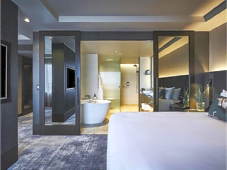 Be the talk of the town in our sleek Deluxe Suite, divided into 3 separate spaces. Bedroom with King bed, bathroom with separate oversize bathtub and a spacious lounge to recharge. Experience sweeping city views from the higher floors plus Executive lounge access, with lounge only continental breakfast, drinks, canapes and complimentary boardroom use for one hour.